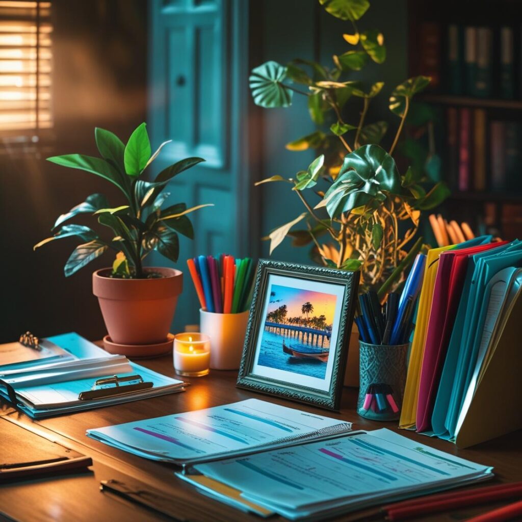 Twoje miejsce pracy powinno odzwierciedlać Twoją osobowość. Warto dodać kilka elementów, które sprawią, że poczujesz się w nim swobodnie i komfortowo. Może to być ulubiona roślina doniczkowa, zdjęcie z wakacji czy inspirujący cytat oprawiony w ramkę. Wprowadzenie takich akcentów zwiększa motywację i tworzy przyjemną atmosferę do nauki i pracy. Możesz też wykorzystać kolorowe markery, segregatory i teczki do organizacji materiałów. Świece zapachowe czy delikatna muzyka w tle pomagają zredukować stres i poprawiają koncentrację. Drobne elementy personalizacji sprawiają, że miejsce pracy staje się bardziej przyjazne i motywujące do działania.