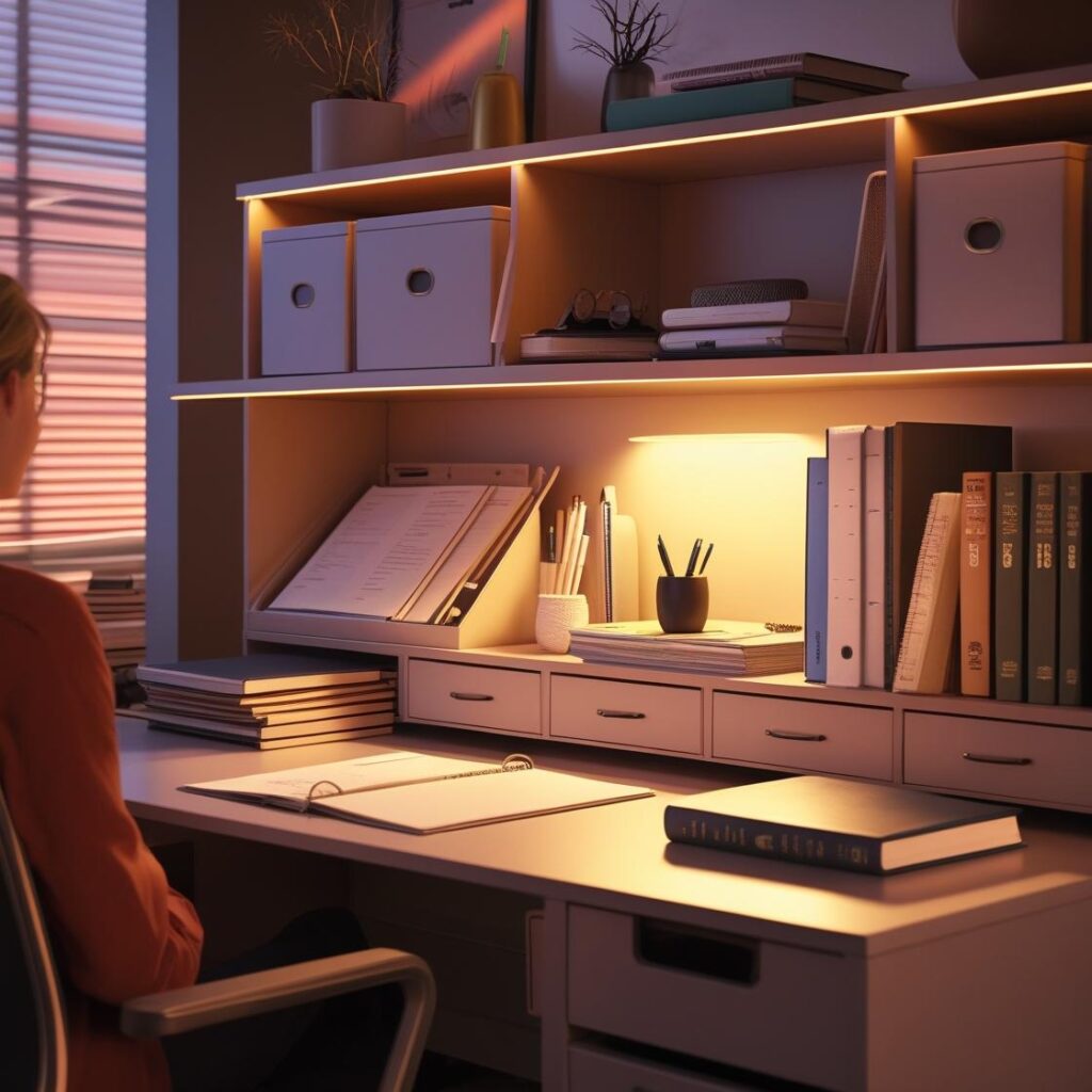 Dobre oświetlenie to podstawa efektywnej nauki i pracy. Najlepszym rozwiązaniem jest naturalne światło, dlatego warto ustawić biurko w pobliżu okna. Jeśli jednak taka opcja nie jest możliwa, zainwestuj w wysokiej jakości lampę biurkową z możliwością regulacji jasności i barwy światła. Ciepłe światło sprzyja relaksowi, natomiast zimne pobudza koncentrację. Ważne jest także, aby światło nie padało bezpośrednio na ekran komputera ani nie tworzyło cieni na książkach czy zeszytach. Jeśli pracujesz wieczorami, zadbaj o dodatkowe źródła światła, aby uniknąć zmęczenia oczu. Dobrym pomysłem są lampki LED lub kinkiety o regulowanej mocy. Unikaj też zbyt ostrego światła sufitowego, które może męczyć wzrok i rozpraszać uwagę. Pamiętaj, że komfort pracy zaczyna się od odpowiedniego oświetlenia.